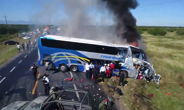 Al medio día de éste viernes se registró un fuerte accidente carretero, en el que participaron un autobús de pasajeros y una pipa que transportaba aceite, esto en Carretera Ciudad Victoria – Monterrey a la altura del ejido conocido como Oyama.