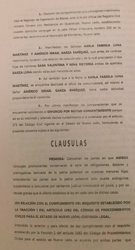 Sin embargo se dio a conocer por parte del equipo de abogados de Américo Garza, que tanto Karla Luna como él, tenía la patria potestad compartida de las menores, por lo que no procede el delito de secuestro de las menores.