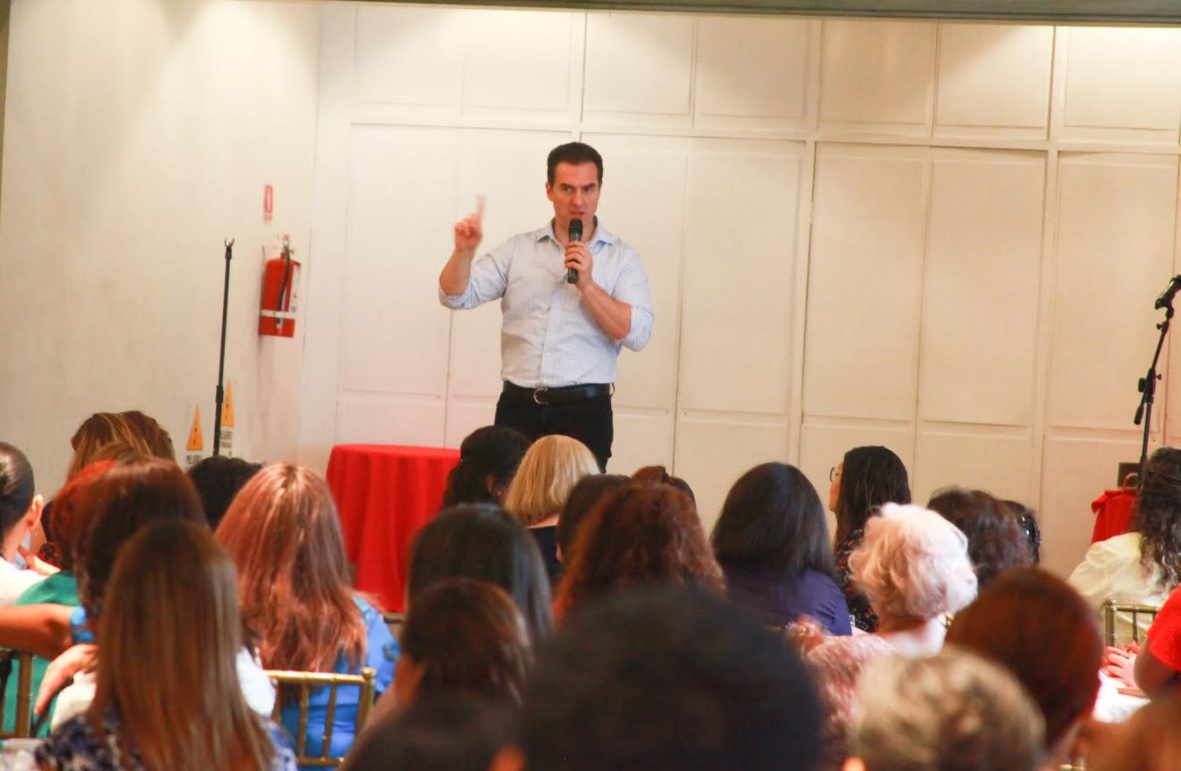 El evento con madres de familia se llevó a cabo en un salón de eventos en la zona Obispado, degustaron junto con el candidato Adrián de la Garza una rica comida, pero antes les proyectó un video para explicarles en qué consiste el programa de Seguridad Total, y les dio a conocer cómo opera el sistema de Vigilancia inteligente que implementó durante su gestión como Alcalde de Monterrey, con la instalación de dos mil cámaras en puntos estratégicos de la ciudad.