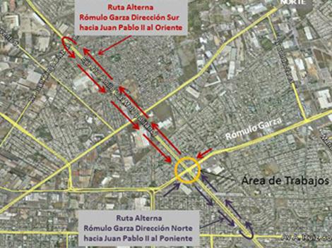 Mientras que los que usarán Rómulo Garza de sur a norte, para tomar Juan Pablo II al poniente, deberán usar esta vialidad al oriente y dar vuelta en U al llegar a Ruiz Cortines.