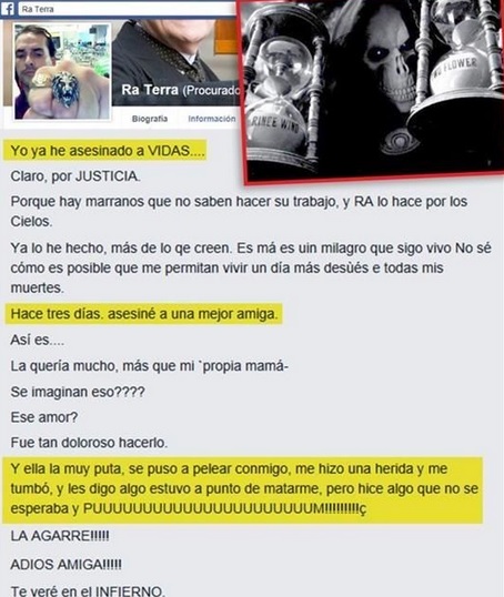 La red social de Facebook fue utilizada por un hombre sampetrino para confesar que había matado a su «mejor amiga» como llamaba a la madre de su novia, sin embargo el mensaje para ella que fue posteado en su muro de Facebook es el siguiente: «Adiós amiga, te veré en el infierno«.