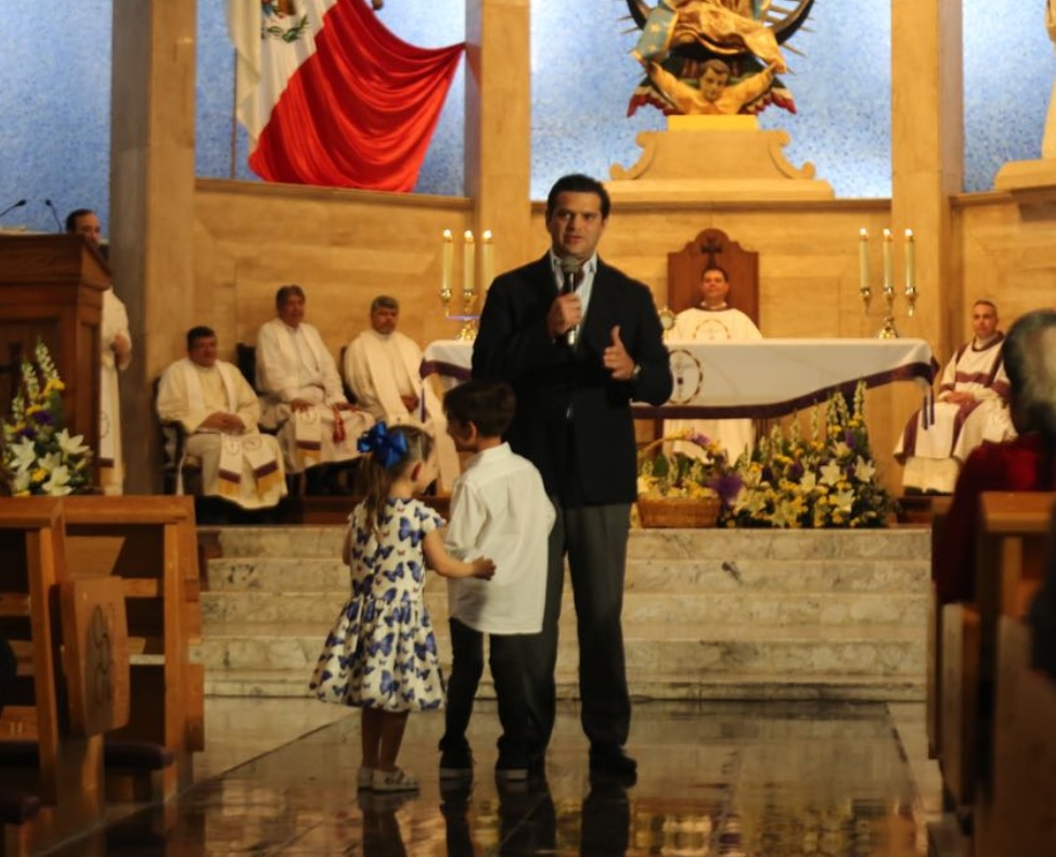 El Alcalde de Guadalupe, Francisco Cienfuegos, acompañado de su familia acudió a la misa que se ofreció en la Iglesia de Nuestra Señora de Guadalupe, con motivo de la entrega de la restauración, mantenimiento y equipamiento del Santuario del Señor de la Expiración, considerado el edificio más antiguo de la Ciudad y Patrimonio Histórico de la Nación.