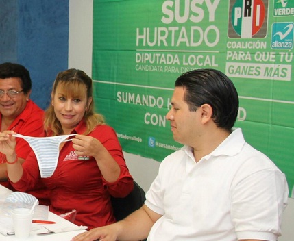 Así que Susana Hurtado candidata del PRI, regala tangas, pantaletas, sostenes y dijo que también tiene muchos bóxers para los hombres, agregó que la ropa interior ha sido recibida con gran alegría por parte de los electores.