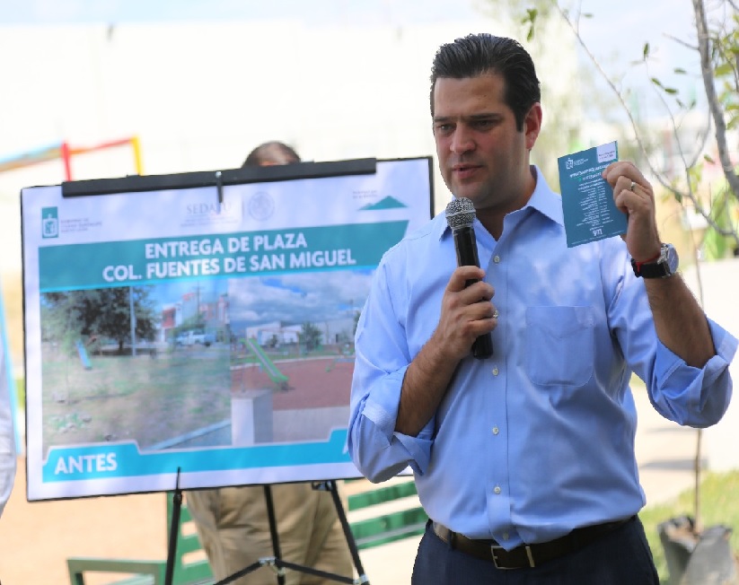 “Guadalupe se está sumando con 101 espacios de todo este modelo nacional y esta es una plaza con alumbrado de calidad, con accesibilidad universal, con andadores, aparatos para hacer ejercicio y juegos infantiles”, explicó el Munícipe.