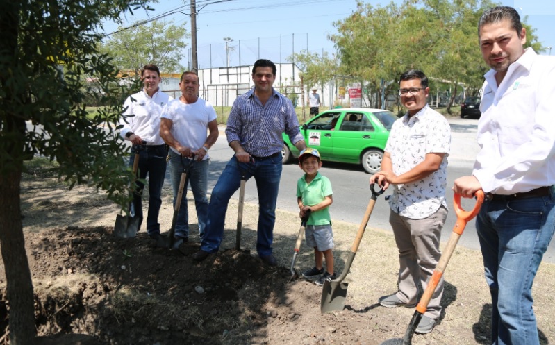 El Alcalde de Ciudad Guadalupe, Francisco Cienfuegos, colaboradores de la Administracióny vecinos de la colonia Santa Margarita, plantaron encino siempre verde en el camellón de la Avenida Arteaga.