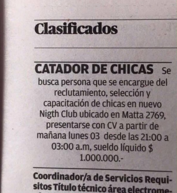 Ante la crisis económica que viven los negocios en Chile, estos han tenido que reinventar sus promociones y hasta sus puestos de trabajo, tal el caso del Night Club «Estación 69» ubicado en la comuna de Antofagasta, quien publicó un curiosa y llamativa oferta de trabajo que llevaron a cientos de jóvenes a aplicar para el particular trabajo.
