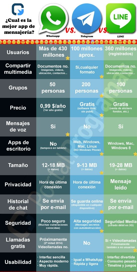 La reciente noticia de la compra de Whatsapp por parte de Facebook por 19 mil millones de dólares, así como la caída que tuvo el servicio de mensajería hace una semana ha ocasionado una guerra entre diversas apps de mensajerías, por lo que, Line y Telegram pelean junto con Whatsapp por liderar está categoría.