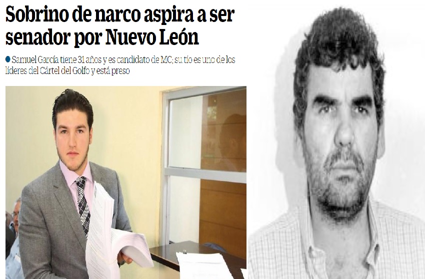El candidato de Movimiento Ciudadano al Senado de la República por Nuevo León, Samuel Alejandro García Sepúlveda, de acuerdo a información compartida por el periódico El Universal, es sobrino de Gilberto García Mena alias “El June” quien se encuentra preso por narcotráfico y es señalado el segundo líder de un grupo de la delincuencia organizada, el Cártel del Golfo.