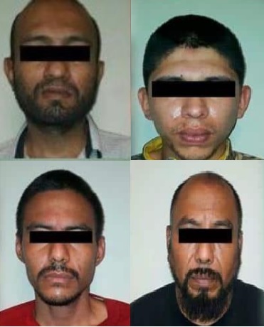 Los detenidos fueron identificados como Armando de 34 años alias “El Comandante” y presunto líder de los Caballeros Templarios, Alan de 22 años alias “El Pelón”, Erick Alexis de 25 años, los tres originarios del Estado de Michoacán y Javier H. de 43 años de Guadalupe, Nuevo León.
