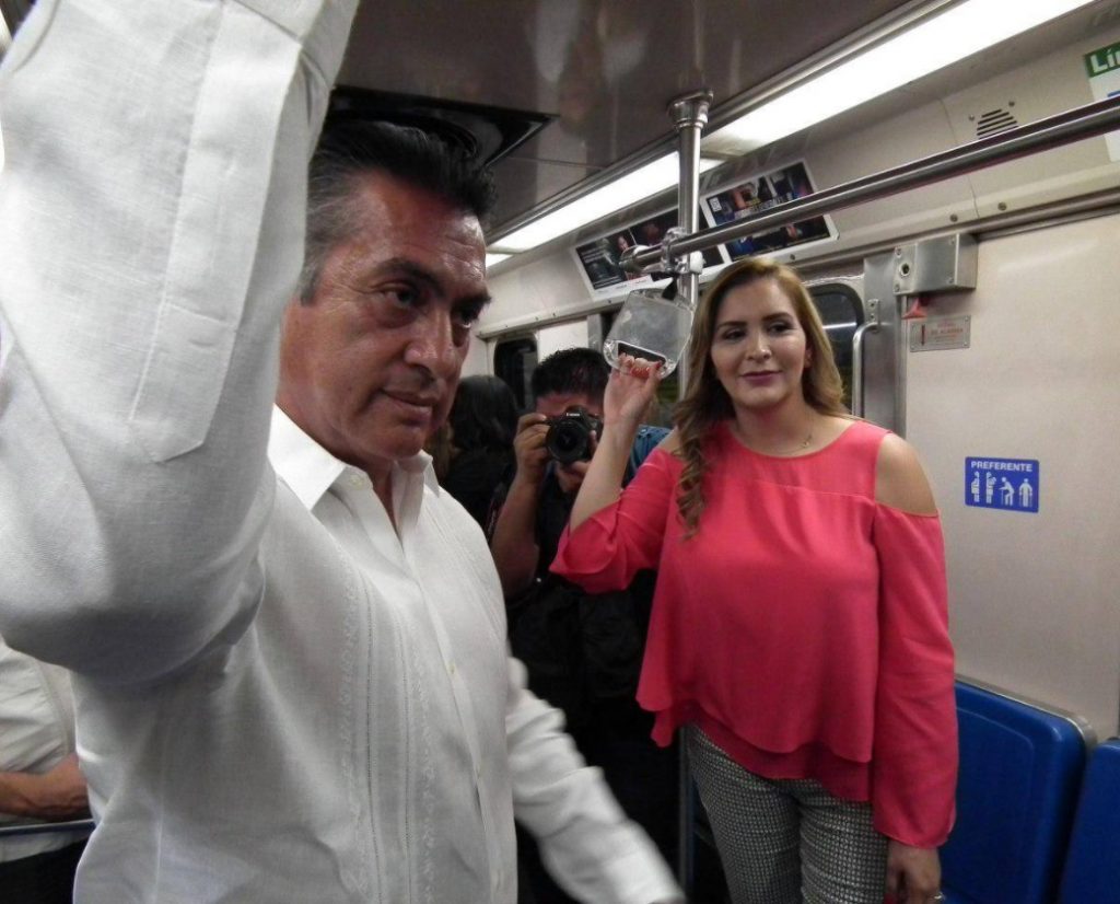 El Gobernador salió de un evento y junto a varios integrantes de su gabinete, llegaron a la Estación Cuauhtémoc y se subieron al Metro, obviamente en compañía de la prensa.