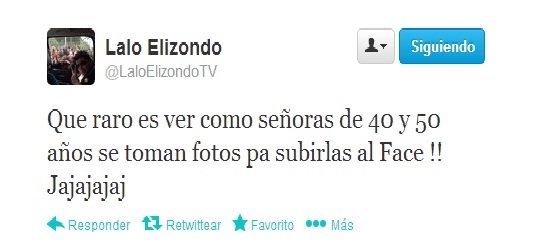 Y bueno mis queridos la metida de pata de Lalito Elizondo en Twitter se hizo muy evidente ya que fue enviado por sus jefecitos a cubrir la presentación del grupo “Flans” en la Arena Monterrey que es propiedad de TV Azteca, sin embargo y a pesar de que el conductor fue parte de la familia Azteca, su falta de profesionalismo lo hizo despotricar en contra del grupo y en contra de las señoras asistentes al evento, chequen: