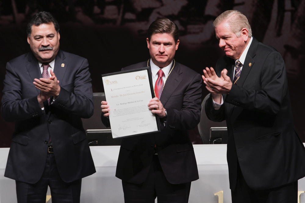Rodrigo Medina fue laureado por la UANL con la medalla Doctor José Eleuterio González, el motivo de su premiación es por que «él logró» la cobertura universal de salud en el estado, lo que no entiendo es por qué premian a alguien por hacer parte de su trabajo, siento que esto es una ofensa para la comunidad de médica, que a propósito hoy es su día, y apenas el sábado pasado, salieron muchos de ellos a protestar a las calles para quejarse por la inseguridad de la también han sido víctimas, irónico verdad.