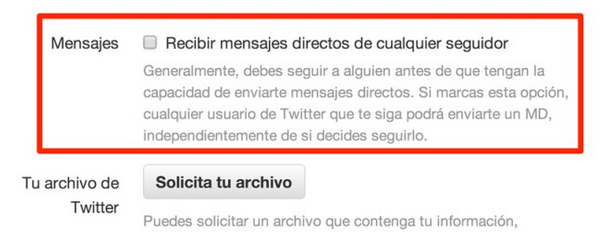 Para poder enviar los mensajes directos simplemente hay que activarlo en la configuración del perfil, dicha opción seguramente beneficiará la comunicación, ya que tradicionalmente los DM entre dos usuarios en Twitter estaban limitados ya que tenían que ser seguidores mutuos para llevar a cabo el mensaje o enviarlos a quienes seguimos sin que éstos tuvieran la posibilidad de contestarlos.