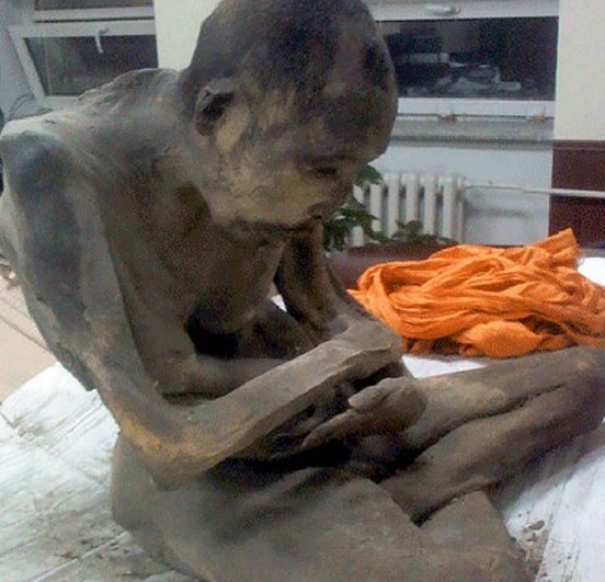 Y aunque se desconoce su identidad, se cree que se trate de un maestro del lama Dashi Dorzho Itigilov, que también murió en esta postura. Fue enterrado en 1927 y cuando fue exhumado en 1973, hallaron el cuerpo momificado aún en la misma posición. Fue ubicado en un templo budista para ser adorado «hasta la eternidad«.