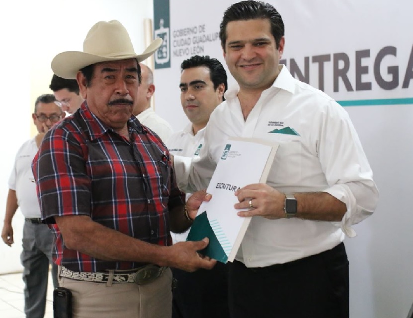 El Alcalde de Ciudad Guadalupe, Francisco Cienfuegos, entregó escrituras a vecinos de las colonias Tierra Propia y Nuevo México, ésto luego de 30 años de carecer de certeza jurídica de su patrimonio, con ellas validan la situación legal de sus propiedades.