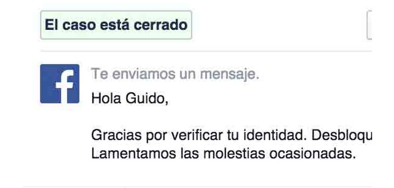 Motivo por el cual tuvo que enviar documentación oficial en donde acreditaba su nombre y apellidos para poder que Facebook comprobara que no se había violado ningún término de uso, para posteriormente recuperar su cuenta.