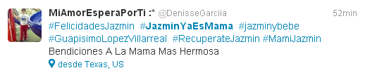Mis queridos lectorcitos, ante la llegada de “guapísimo”, las fans de Jazmín López Villarreal la han colocado en TT con tres distintos hastags #FelicidadesJazmín #JazmínYaEsMamá y #BienvenidoBebé.