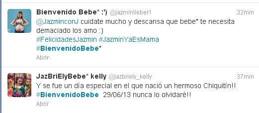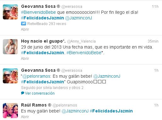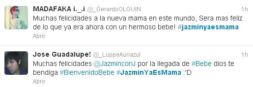 Aquí algunos de los tuits que le han dedicado a Jazmín con J por la llegada del tan esperado bebé: