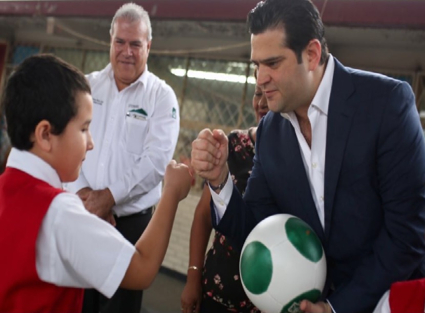 Por tal motivo acudió a la Escuela Primaria Ignacio Morones Prieto, ubicada en la colonia León XIII, para hacer entrega material deportivo a los alumnos de este plantel educativo.