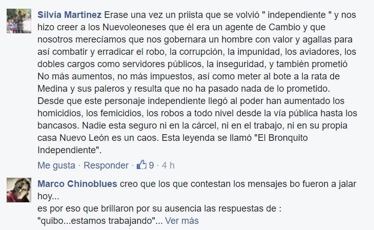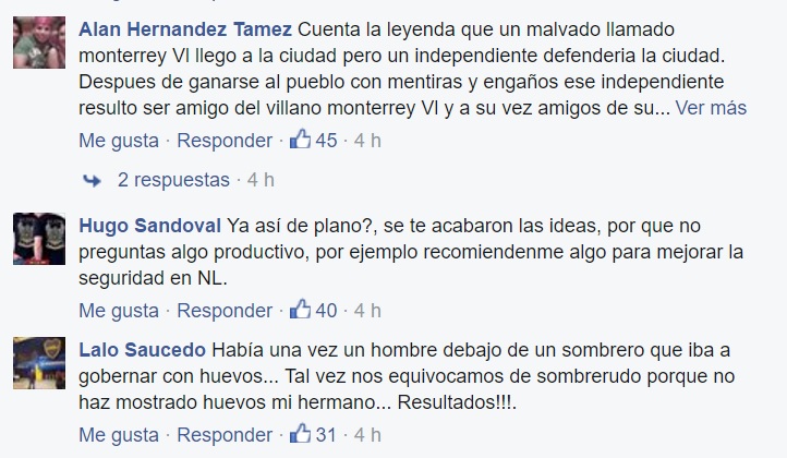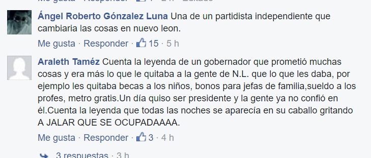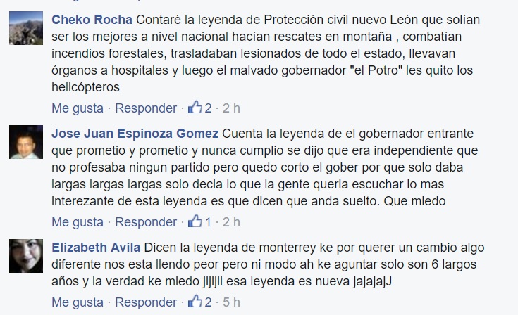 Como si en realidad en Nuevo León no hubiera cosas más importantes, y como es costumbre Jaime Rodríguez Calderón se puso a perder el tiempo en su Facebook, y hoy mediante un post pidió que le cuenten las diferentes leyendas que se escuchan en los municipios, pero como la raza ya está cansada de tantas bobadas, la misma raza le contó sus propias leyendas.