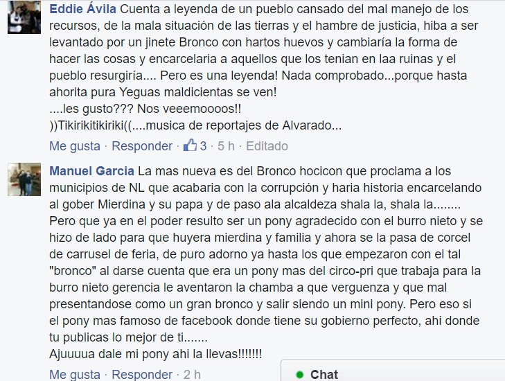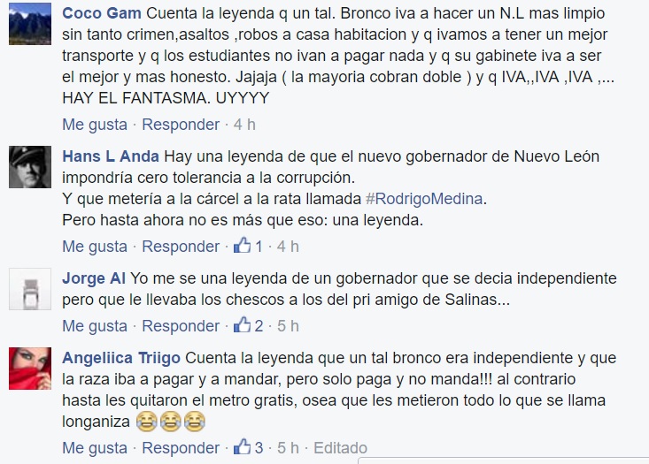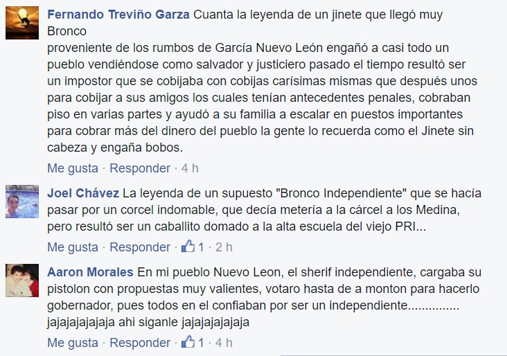 A los minutos de haber publicado el post, Jaime Rodríguez recibió decenas de respuestas, desde leyendas verdaderamente aterradoras y hasta algunas muy siniestras, pero todas encaminadas con el mismo común denominador, un bronco que prometía y prometía y a la mera hora nada de nada.