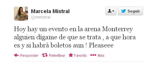 El día de ayer sin saber quién estaría y de qué se trataba el evento que se llevó a cabo en la Arena Monterrey, Marcela lanzó el siguiente tuit: