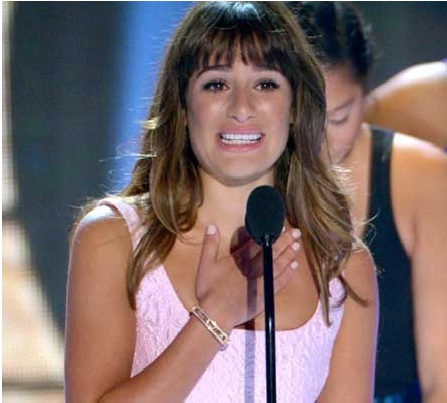 Lea Michele agradeció a sus fans sus muestras de cariño, mismas que le han ayudado a salir adelante en los momentos difíciles, con su voz quebrada y sus ojos llorosos, Lea le dedicó el premio a su fallecido novio Cory Monteith.