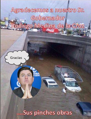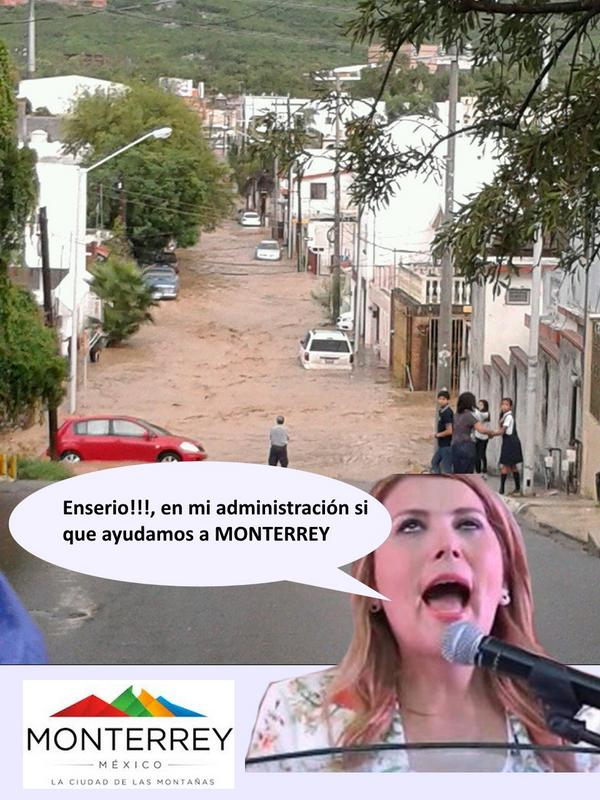 Y por supuesto que la ciudadanía reaccionó en contra del mal trabajo que realizan el Gobernador Rodrigo Medina de la Cruz y la Alcaldesa de Monterrey Margarita Arellanes Cervantes, quienes recibieron mediante las redes sociales de Twitter y Facebook los tradicionales «memes» que reflejan el enfado y reclamo de quienes se vieron afectados por las intensas lluvias, hasta les llovieron mentadas de aquellos que sufrieron un daño en su auto y por supuesto pusieron en peligro su vida.