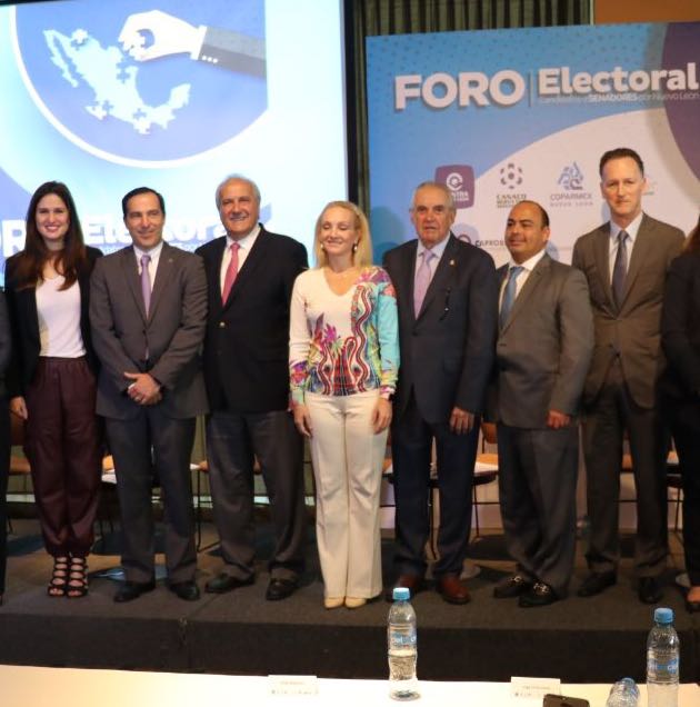 La candidata al Senado, Martha de los Santos González y su compañero de fórmula Jorge Mendoza Garza, estuvieron este viernes en el Foro Electoral Candidatos a Senadores por Nuevo León organizado por la CAINTRA Nuevo León, en donde también participaron la CANACO, COPARMEX, CANADEVI Nuevo León, CAPROBI, el Consejo Cívico e INDEX Nuevo León.