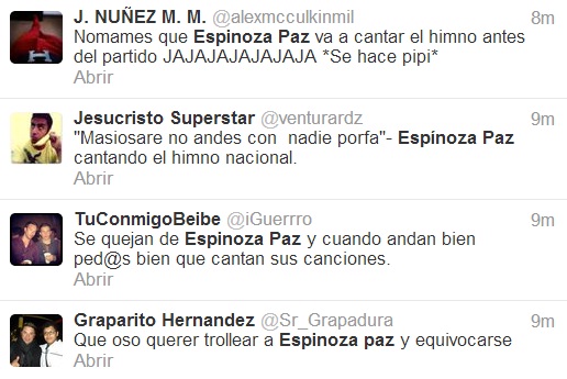 Con tuits muy originales han llevado a Espinoza Paz a colocarse en pocas horas en Tendencia Nacional en la red social Twitter.