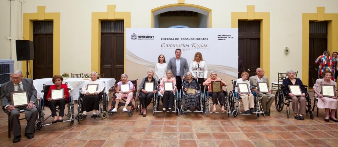 El Municipio de Monterrey reconoció éste martes a 12 adultos mayores que rebasan los 100 años de edad, ésto en el evento de «Centenarios Regios«, la ceremonia la encabezó el Secretario de Ayuntamiento, Genaro García en representación del Alcalde Adrián de la Garza Santos Santos.