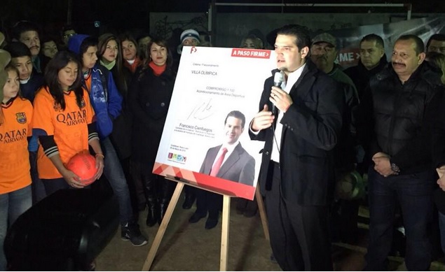El candidato del PRI a la Alcaldía de Guadalupe, Francisco Cienfuegos, inició su campaña durante la madrugada de este viernes, firmando su primer compromiso en la colonia Villa Olímpica, acompañado de padres de familia, jóvenes y niños, el priísta se comprometió al acondicionamiento de un área deportiva que en la actualidad se utiliza como campo de fútbol.