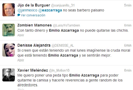 El empresario mexicano Emilio Azcárraga Jean de 45 años, es una de las personas mas influyentes del país, por lo que causó sorpresa al perder “el estilo” estado sin camisa y de rodillas, siendo de inmediato blanco de la comunidad tuitera, que de inmediato dio su opinión.