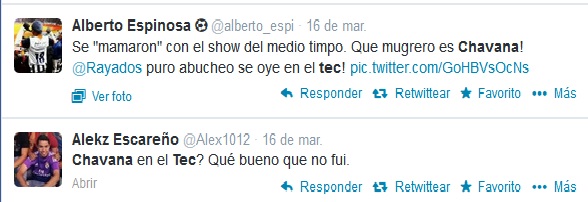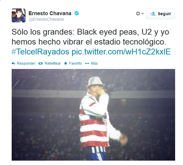 Lo que muchos no saben es que Ernesto Chavana salió bien enojado de la cancha del Tec, refiriéndose a los que lo abucharon como unos ignorantes, rancheros y faltos de educación, “Está gente corriente no sabe que soy muy famoso”, “Puro Licenciado corriente, que ching…. a su madre”, “Gente ignorante, rancheros sin educación, no respetan el arte, no saben de música, afición de los rayados ignorantes”, “Pend….. afición de los rayados, agradecidos debían de estar que me presente en el Tec, a quien deberían de abuchar es a su equipo mediocre”, eso lo dijo en presencia de varias personas y sólo fueron algunas de las expresiones de Ernesto Chavana hacia la afición del Monterrey, después de haber abandonado la cancha, y lamentable cómo se expresó de quienes no se dejan engañar por la televisión basura y de quienes son Rayados de corazón y que les pareció pésima la presentación de Chavana en el Estadio.