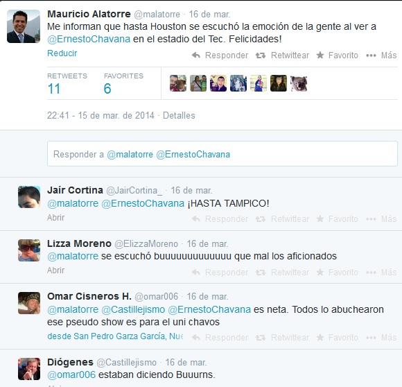 Por supuesto que tenía que salir al quite, después de que la red social se estaban burlando de los abucheos que el rey del tribal recibió, no podía dejar Mauricio Alatorre que su compinche Ernesto Chavana fuera «acribillado» por tantos abucheos de los aficionados presentes en el Tec.