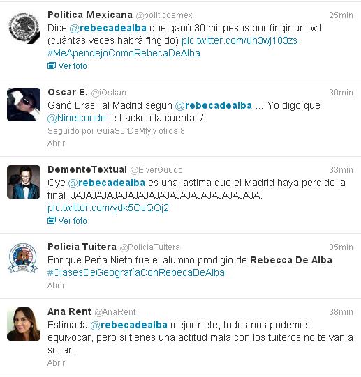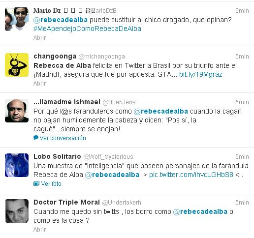 Aquí algunos de los tuits que los tuieteros le han dedicado a Rebeca de Alba, bajo el HT #MeApendejoComoRebecaDeAlba: