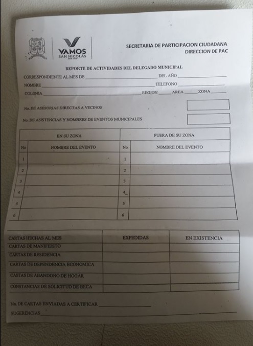 Es obvio, ya que el Alcalde Víctor Fuentes tiene que seguir con la tradición de “amarrar” votos. En la cuenta de Facebook de “San Nicolás al día” aseguran que el pasado viernes se presentaron alrededor de 50 delegados ciudadanos llenando la tradicional papelería para recibir los apoyos, que según deben ser para labores de gestoría, participación ciudadana y limpieza de las plazas públicas, aunque en tiempos electorales sabemos perfecto que no son para estos temas sociales.
