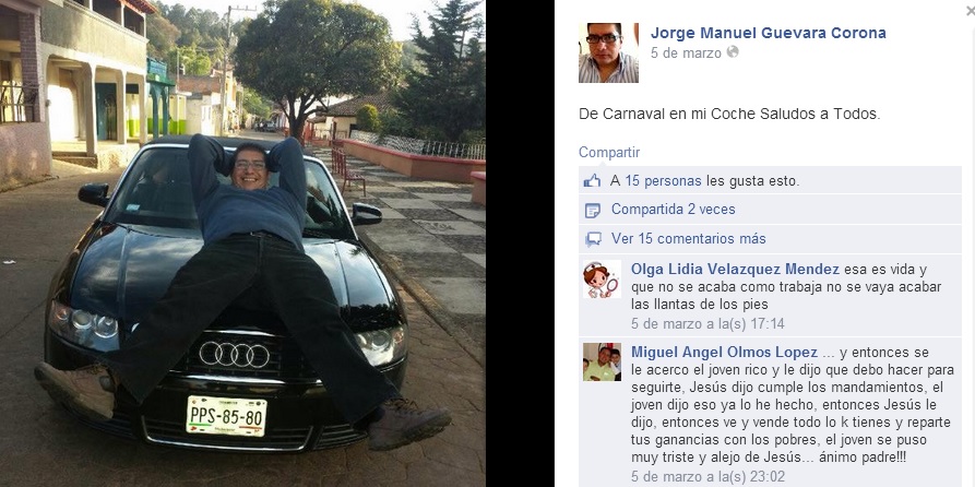 Las redes sociales le han servido a un sacerdote de Michoacán para expresar su gusto por las mujeres y por los autos, ya en diversas publicaciones en Facebook, Jorge Manuel Guevara Corona quien es párroco de la Iglesia de Guadalupe deja al descubierto sus debilidades por las damas voluptuosas.