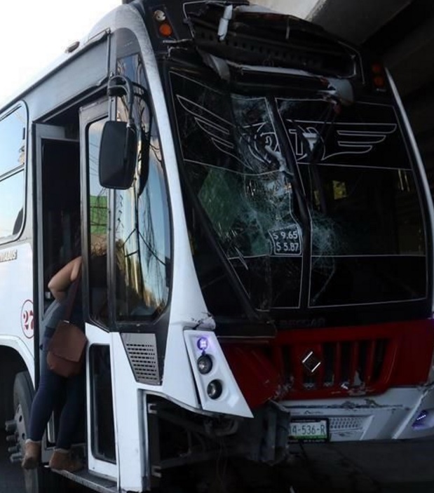 Se impacta camión urbano en el Túnel de la Loma Larga