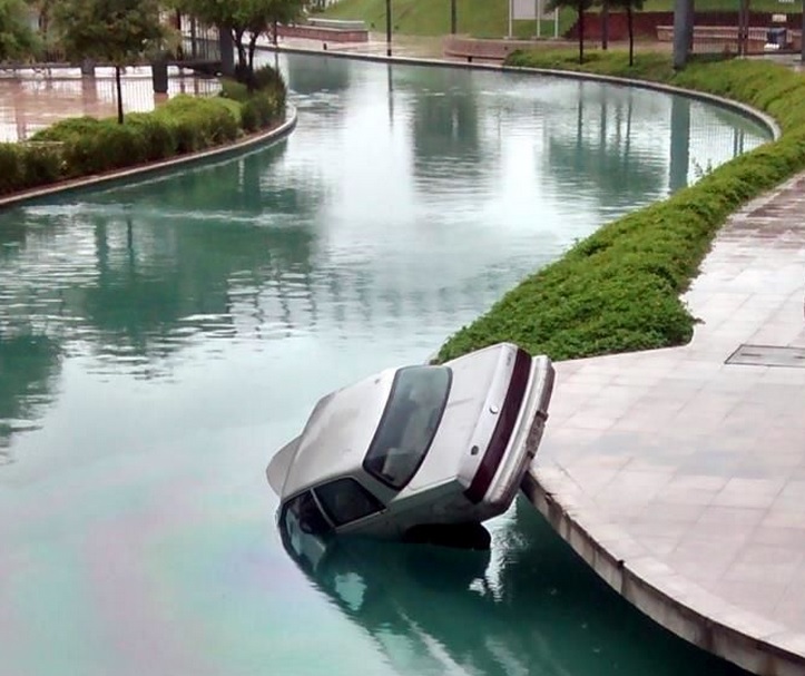 Matrimonio vuelca su camioneta en estacionamiento de Plaza Esfera