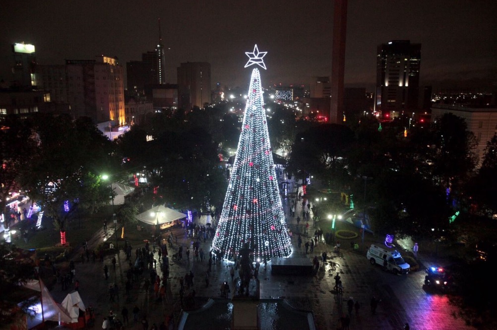 Realizan encendido del gran pino navideño de Monterrey