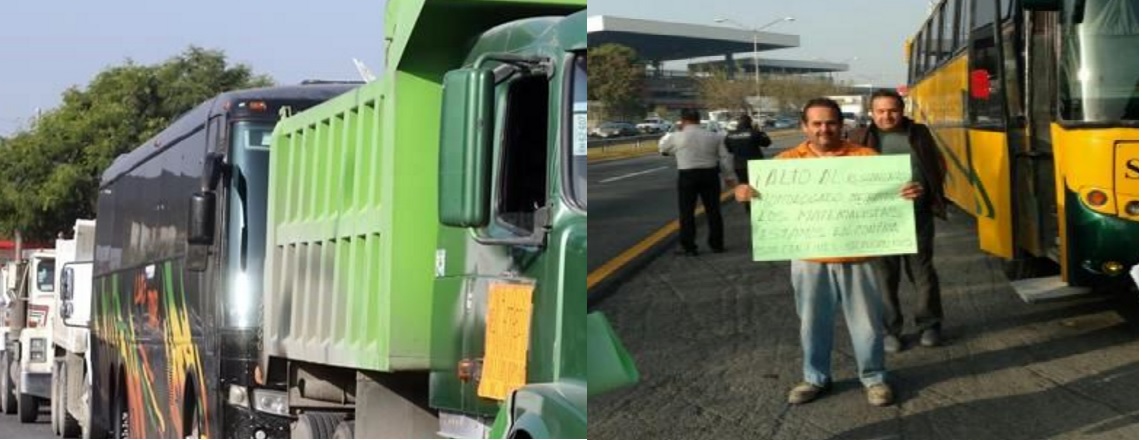 Protestan transportistas, realizarán caravana rumbo a la Macroplaza