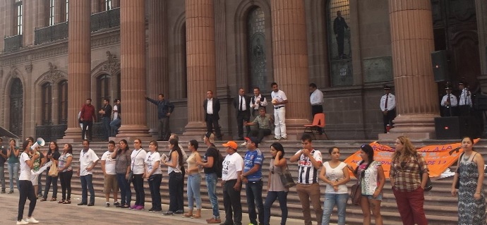#MaestrosNL realizan cadena humana en el Palacio de Cantera