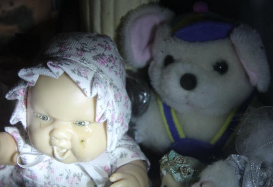 Muñeca llora en la tumba de una niña