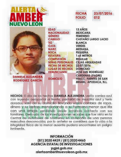 Desaparece niña en Nuevo León, se activa pre Alerta Amber