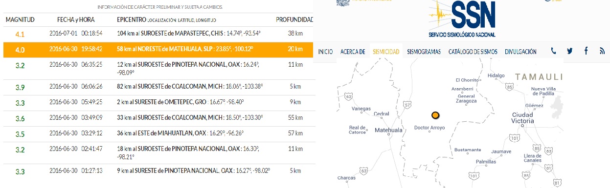 Se registra sismo en Ciénega de Flores