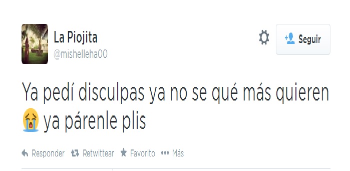 Así es que ante la burla e insultos recibidos en Twitter, la «Lady Pioja» pidió una disculpa: