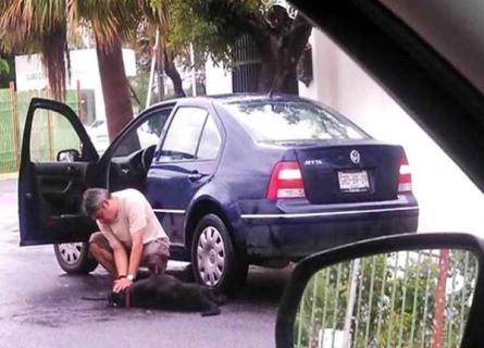 Una persona logró captar imágenes de los diferentes momentos que aquí se describen, y las compartió vía Facebook, después de arrollar al perro el tipo se baja de su coche y según él se preocupa por la mascota, ya que se dio cuenta que alguien lo estaba fotografiando, el hombre levantó al perro y lo fue a abandonar.