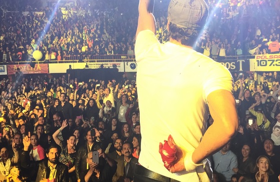 Enrique agrarró el dron y no lo hizo bien, deslizó su mano derecha y terminó accidentado de varios dedos, informó su staff, sin embargo el cantante muy profesional, se ausentó un momento para le cubrieran las heridas y decidió continuar con su show que forma parte de su tour «Sex and Love».
