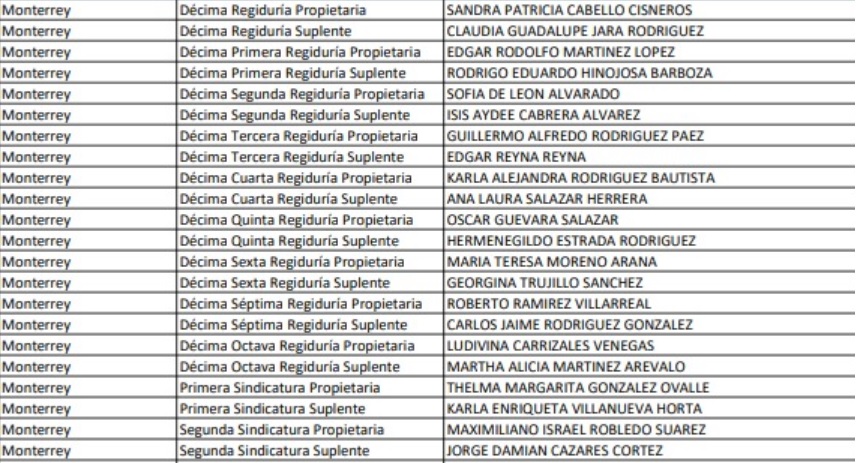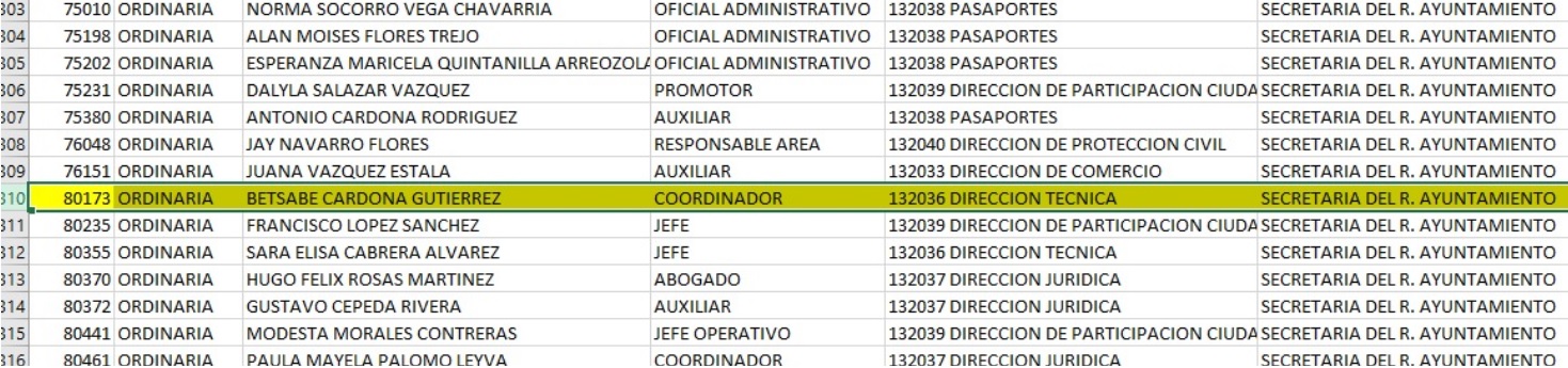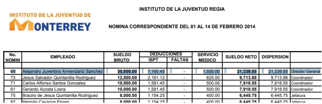 También fueron exhibidos Sofia De León Alvarado con la nómina 104504, Hermenegildo Estrada Rodríguez con el número de empleado 82394, Jorge Damián Cazares Cortéz con la nómina 83426, Alejandro Juventino Armendáriz Sánchez, quien era el Director del Instituto de la Juventud de Monterrey ganado un sueldazo de 30 mil pesos, éste joven lo recordamos bien por aquel escándalo del viaje a Puerto Vallarta en el 2013.